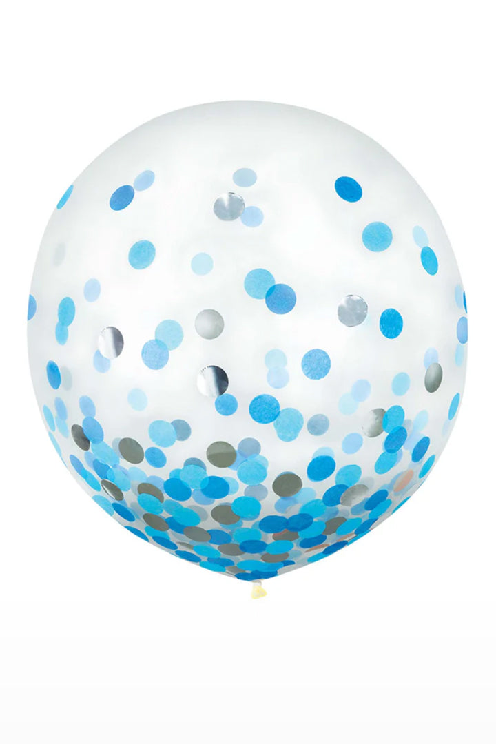 1 بالونات كونفيتي زرقاء فضية مقاس 24 بوصة
