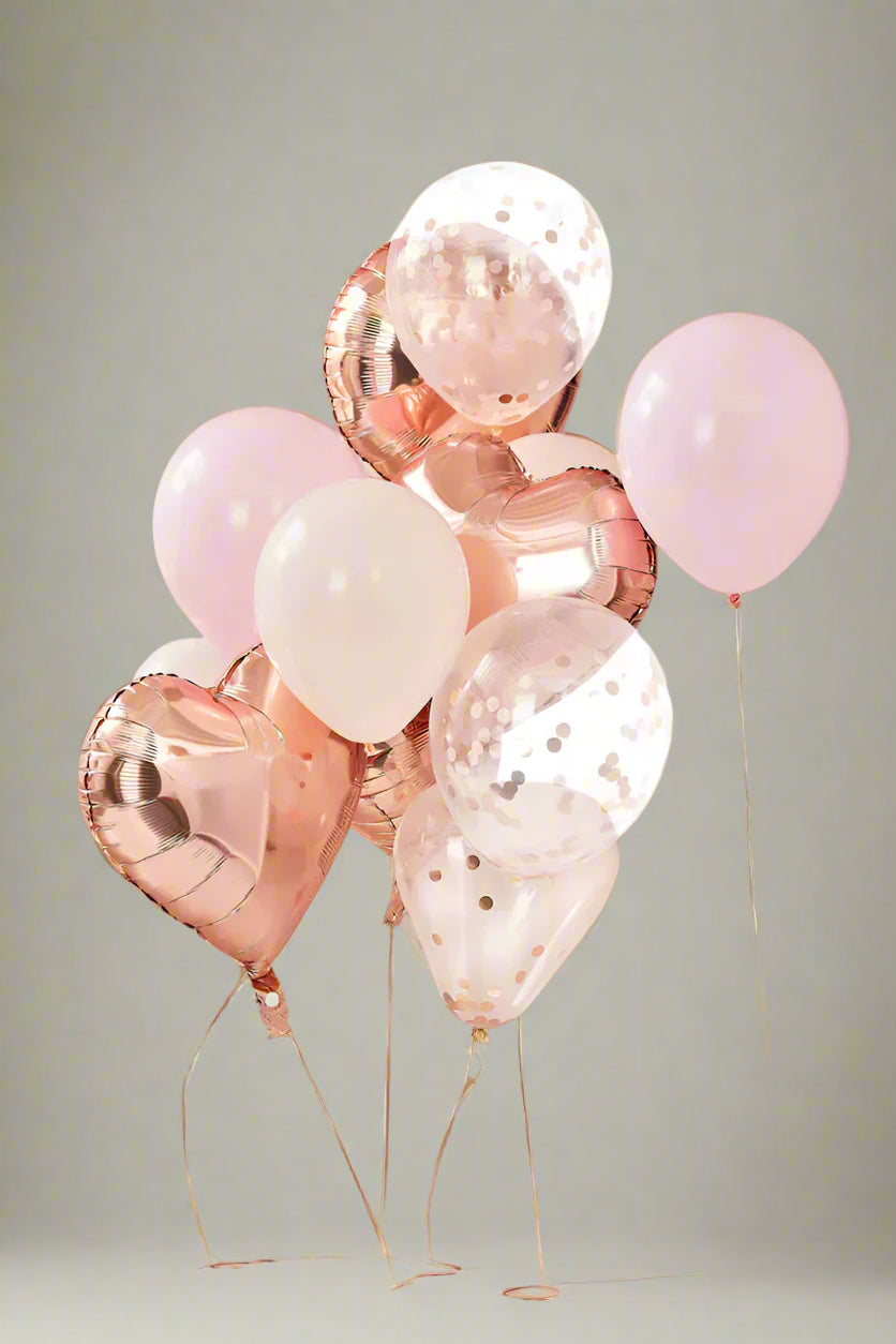 12 بالونًا باللونين الوردي الذهبي والوردي