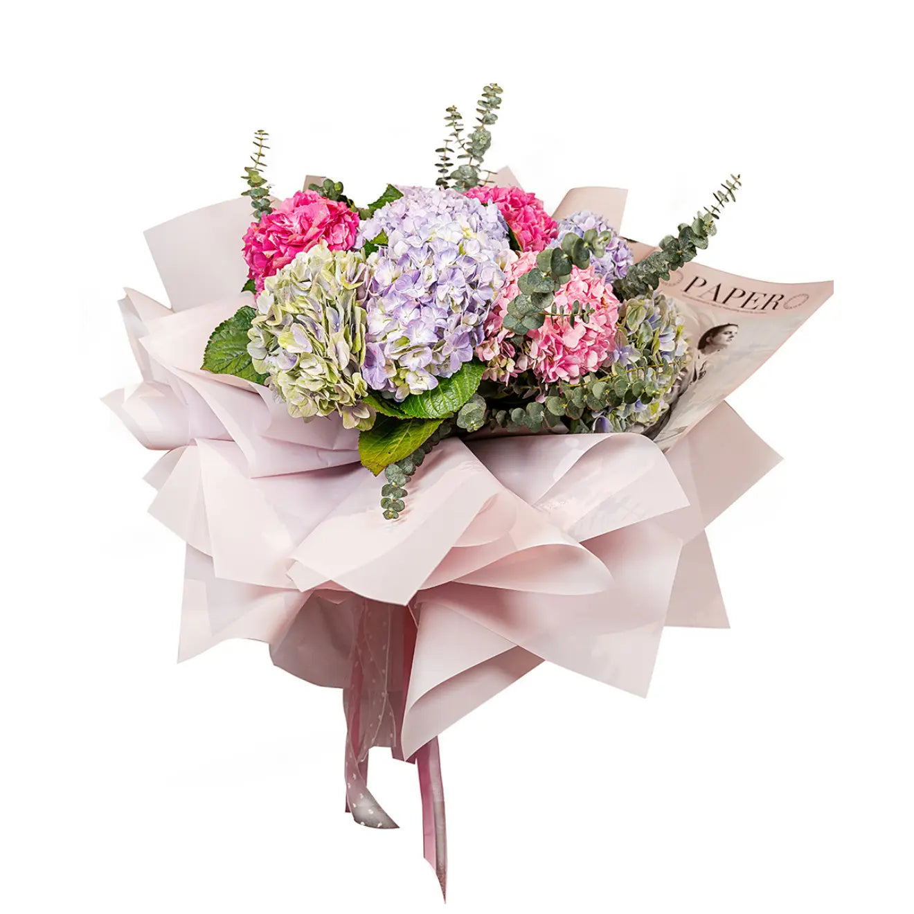 أهدي هذه الزهرة الزاهية لعشاق الحفلات. هذه الباقة ذات الألوان النابضة بالحياة مغلفة بأناقة باللون الوردي الفاتح. تحتوي الباقة على خمسة ألوان من زهور الكوبية وغلاف فاخر.
