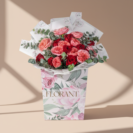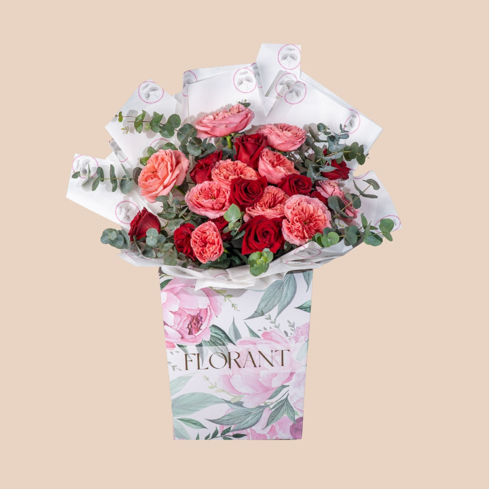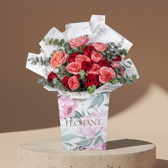 يجمع هذا التنسيق الأنيق بين الأناقة الخالدة واللمسة العصرية. يتميز بزهور بينغ بونغ الرقيقة وزهور الكوبية الناعمة باللون الأبيض، مع لمسات جمالية من أقحوان ديليستر بدرجات الأخضر والأرجواني. تضفي ورود الإكوادور العاجية الوفيرة لمسة كلاسيكية راقية، بينما تضفي زهرة أمي ماجوس الخفيفة لمسةً من الرقة والخفّة، مثالية للمناسبات الراقية أو كهدية مميزة.