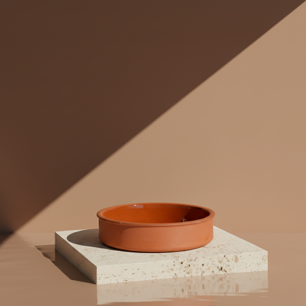 Contemporary clay-toned pedestal bowl featuring horizontal ribbed detailing. Ideal for floral arrangements and home styling.