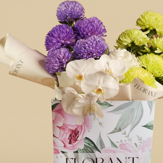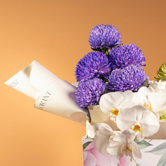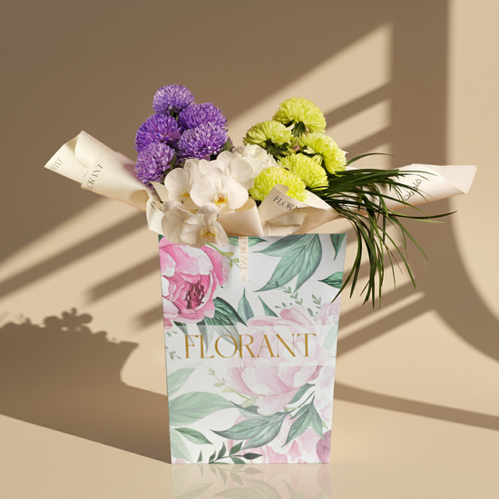 Wrapped in luxe white paper with beige ribbon and presented in our floral-printed Florant box. A standout choice for those who love strong contrasting colors.
