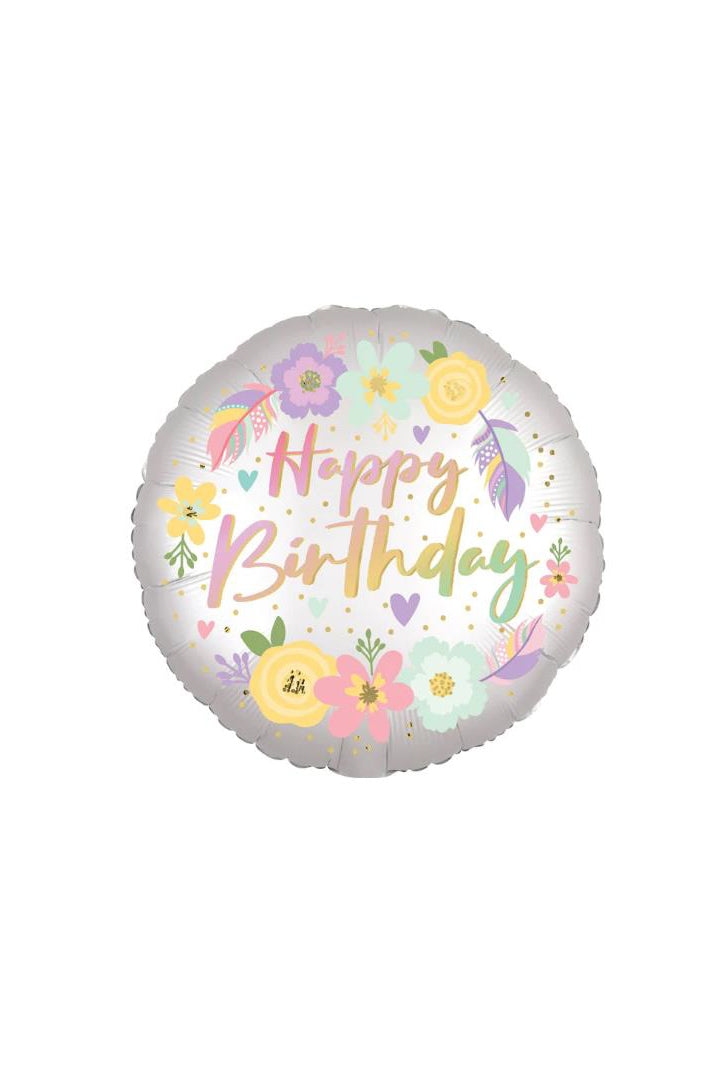 Boho Birthday Satin Flowers Foil Balloon 45cm