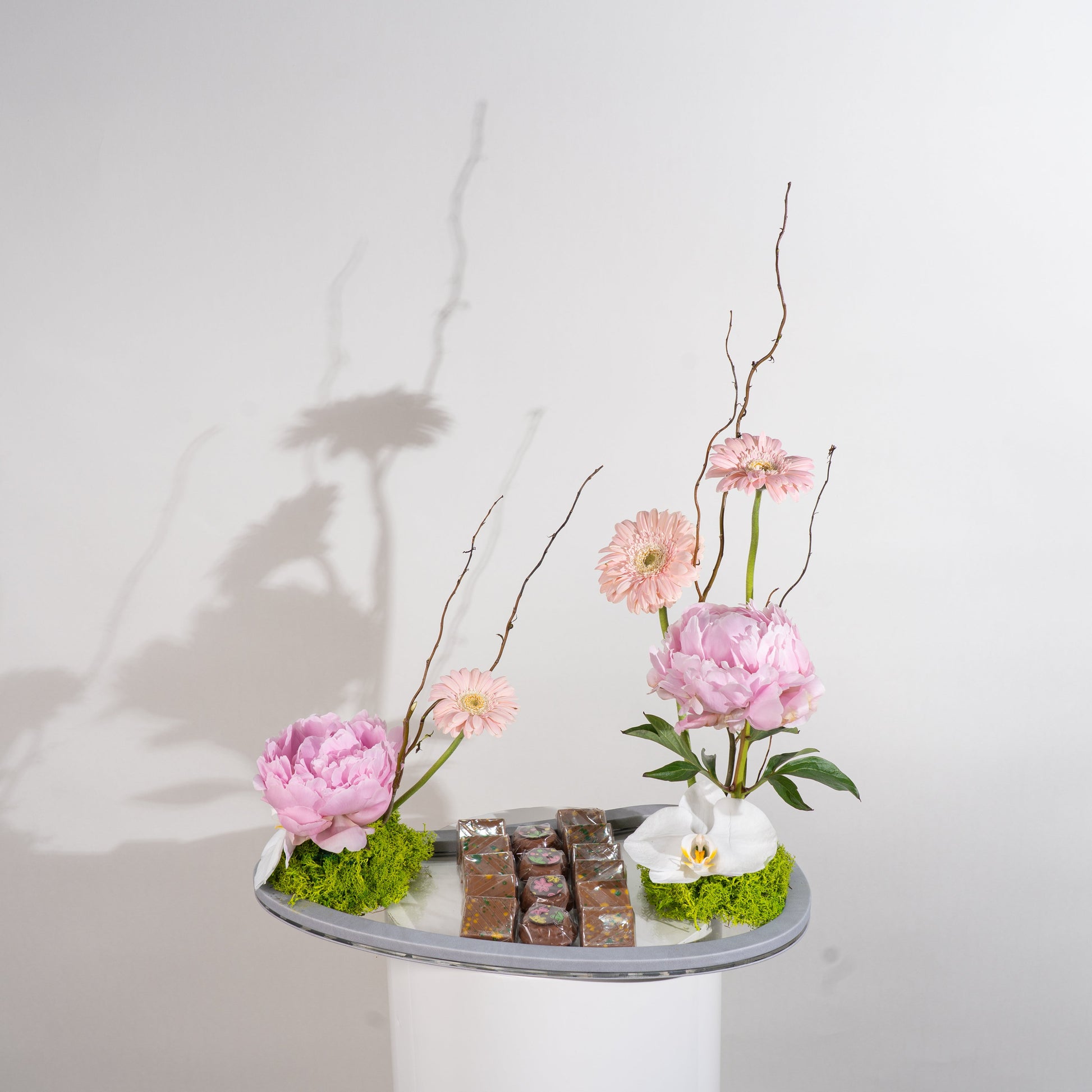 A tray that brings together floral charm and chocolate delight — an elegant gift for every occasion.
