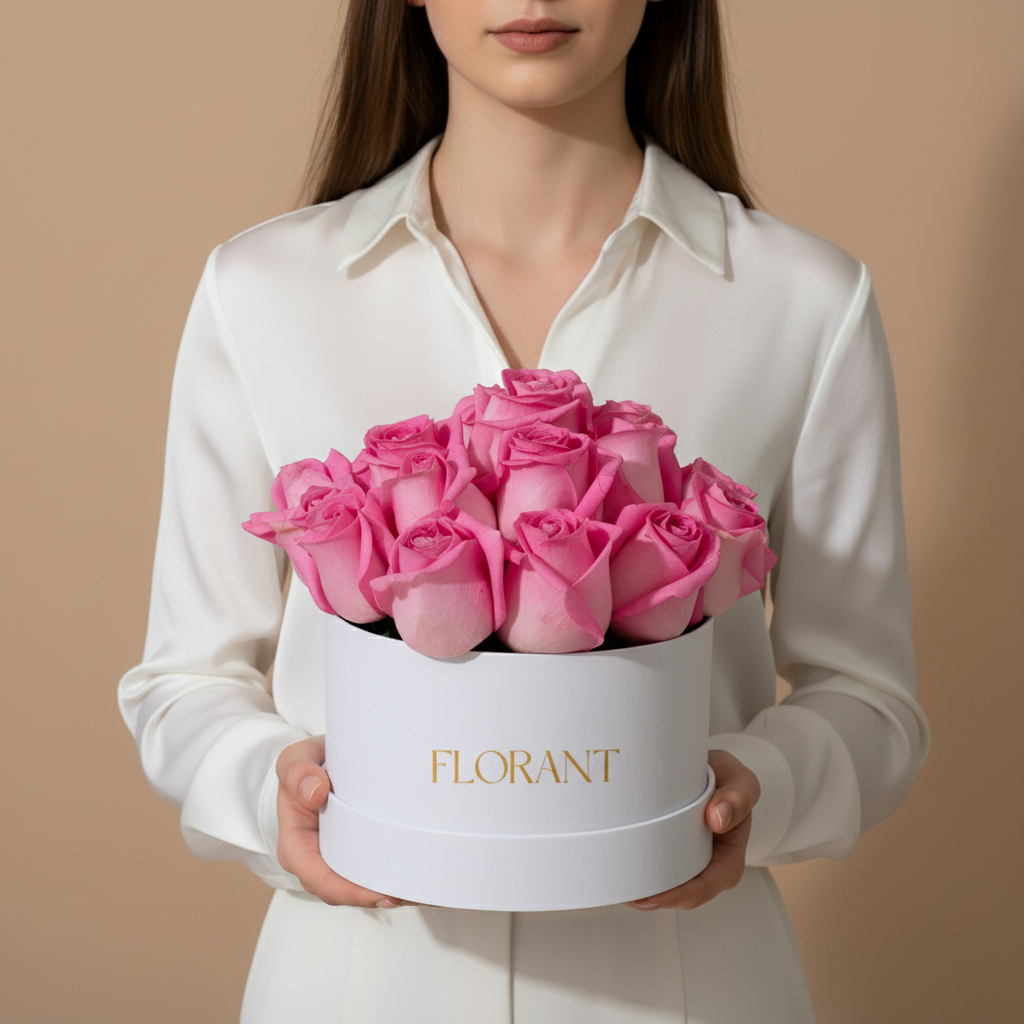 Luxurious expression of femininity and tenderness, filled with perfectly arranged pink roses. A dreamy gesture to say love & gratitude.