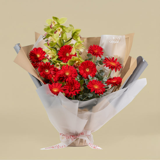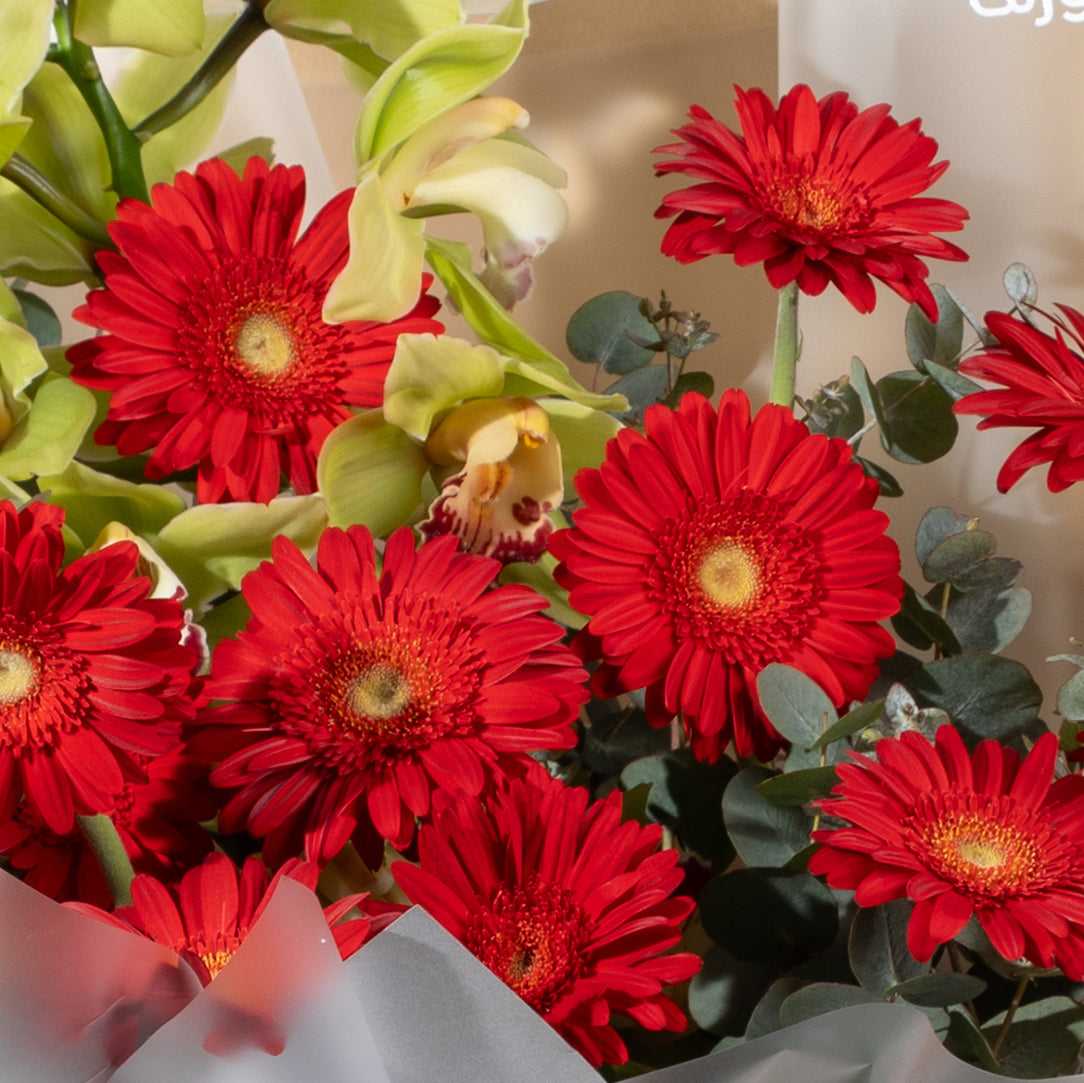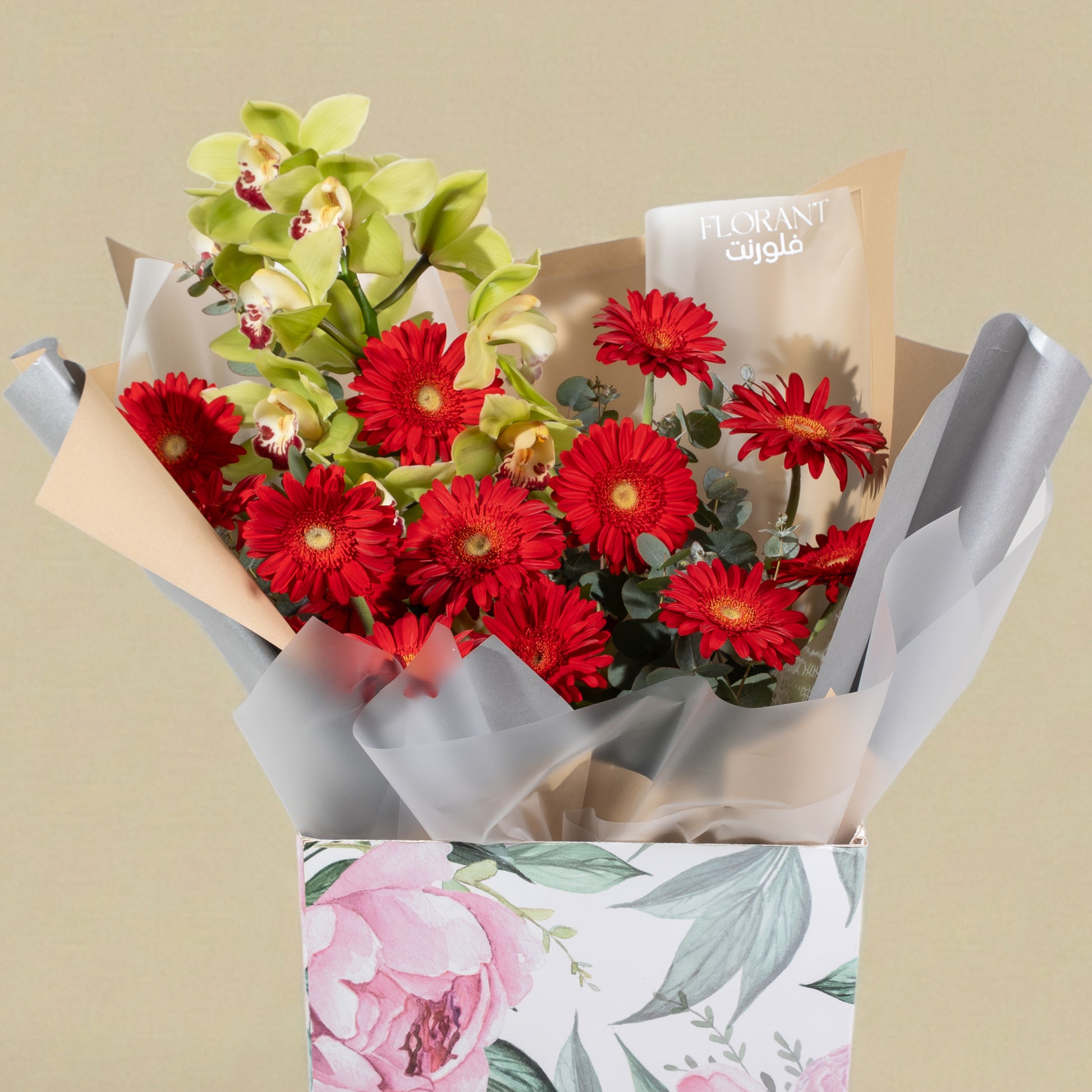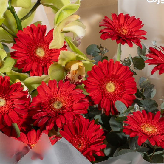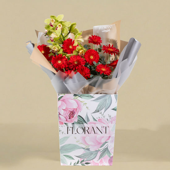 "The perfect blend of luxury orchids and passionate red blooms. An elegant statement to say 'I Love You' in the most beautiful way.