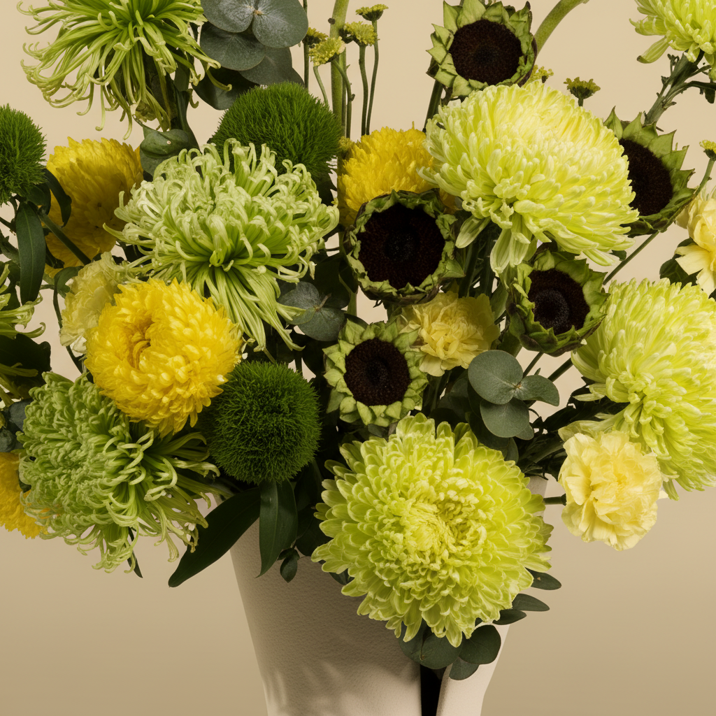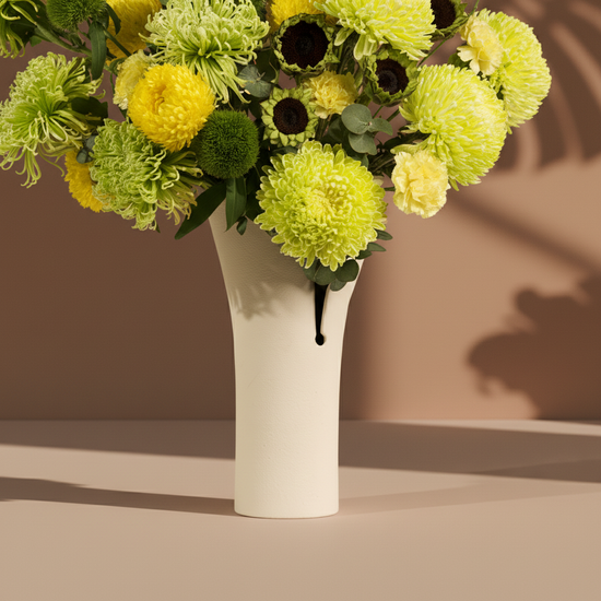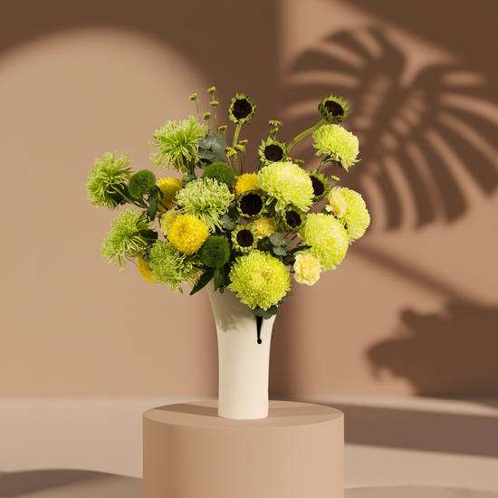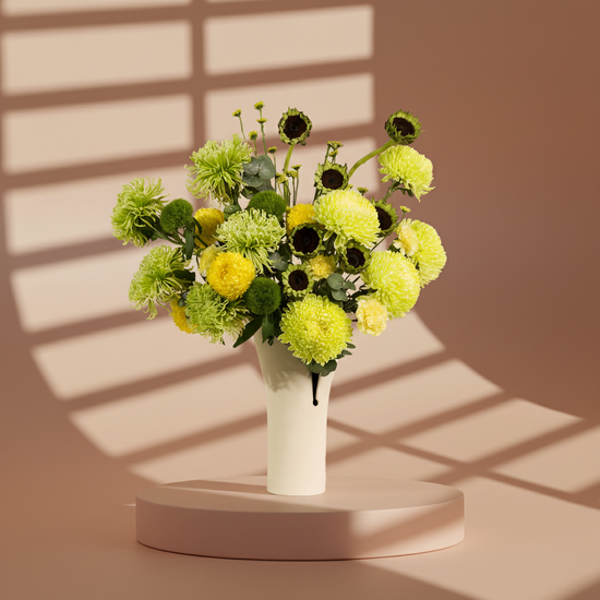 A modern arrangement of bright flowers that adds a touch of vitality and elegance, perfect as a gift or to brighten everyday moments."Note: If any flower is unavailable, we will substitute it with one of equal or higher value while maintaining the same colors and overall style. As natural products, slight color variations may occur.