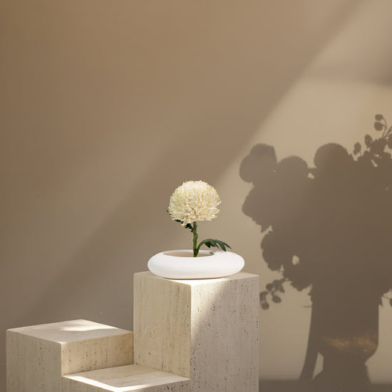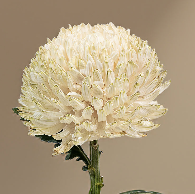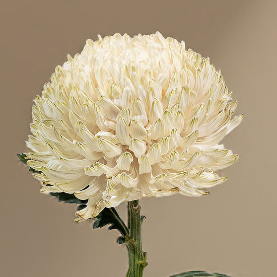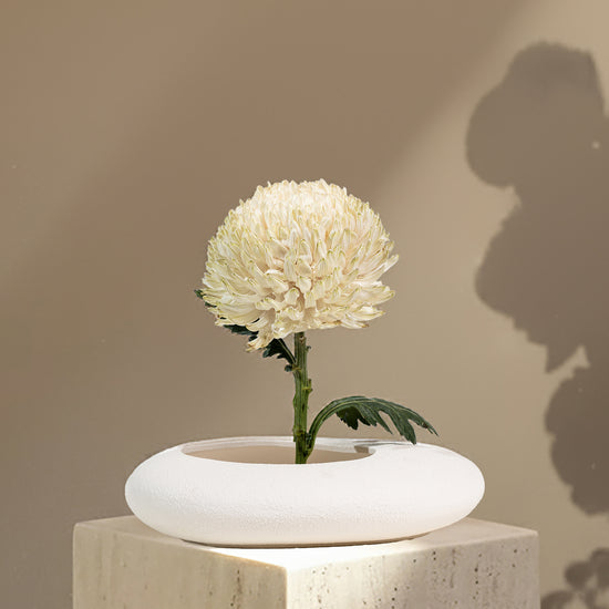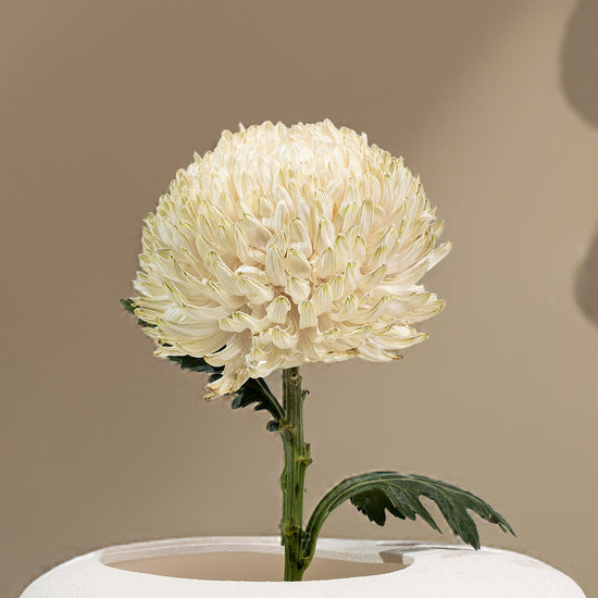 Luxurious cream chrysanthemum in modern ceramic vase. Simple elegance for your space