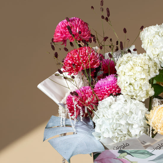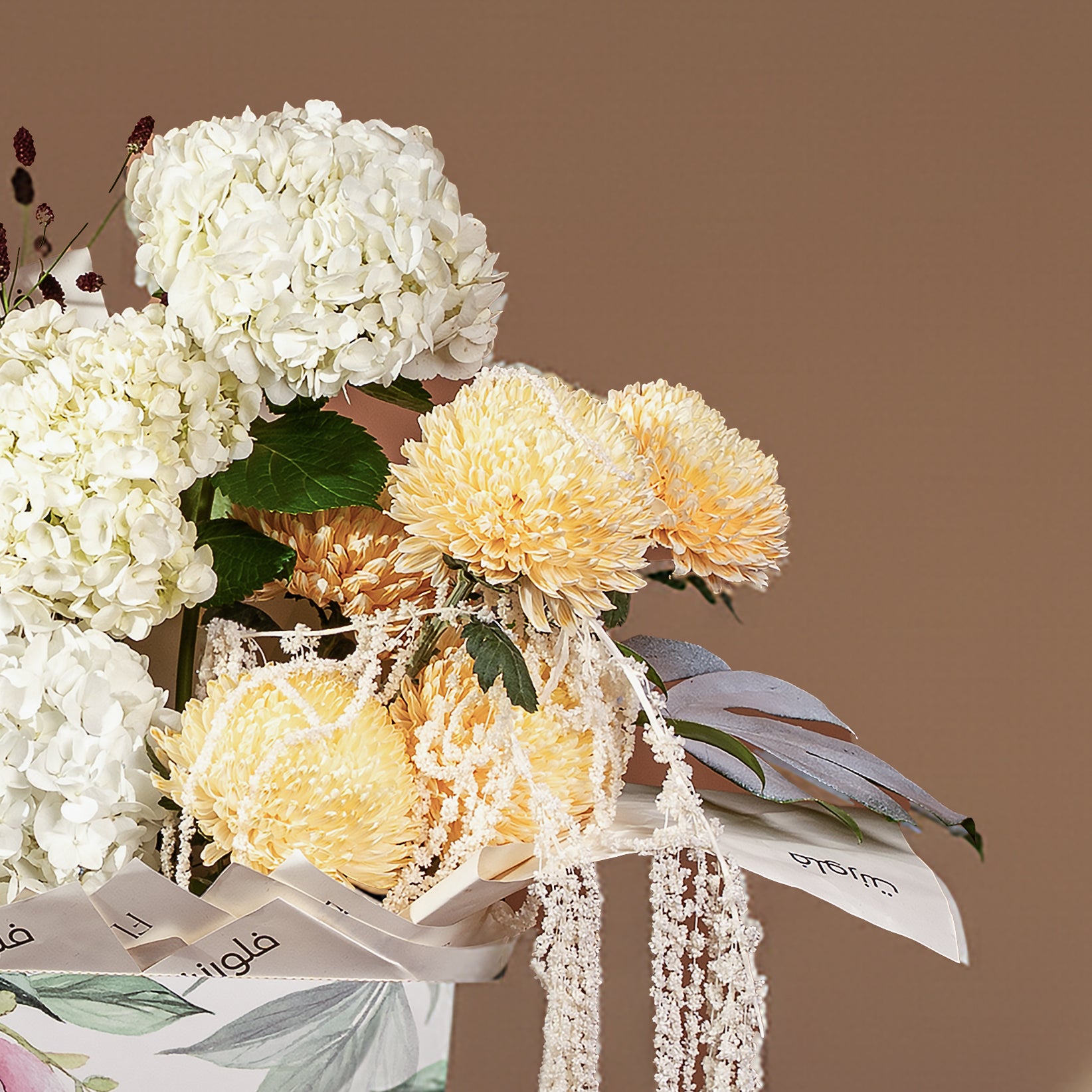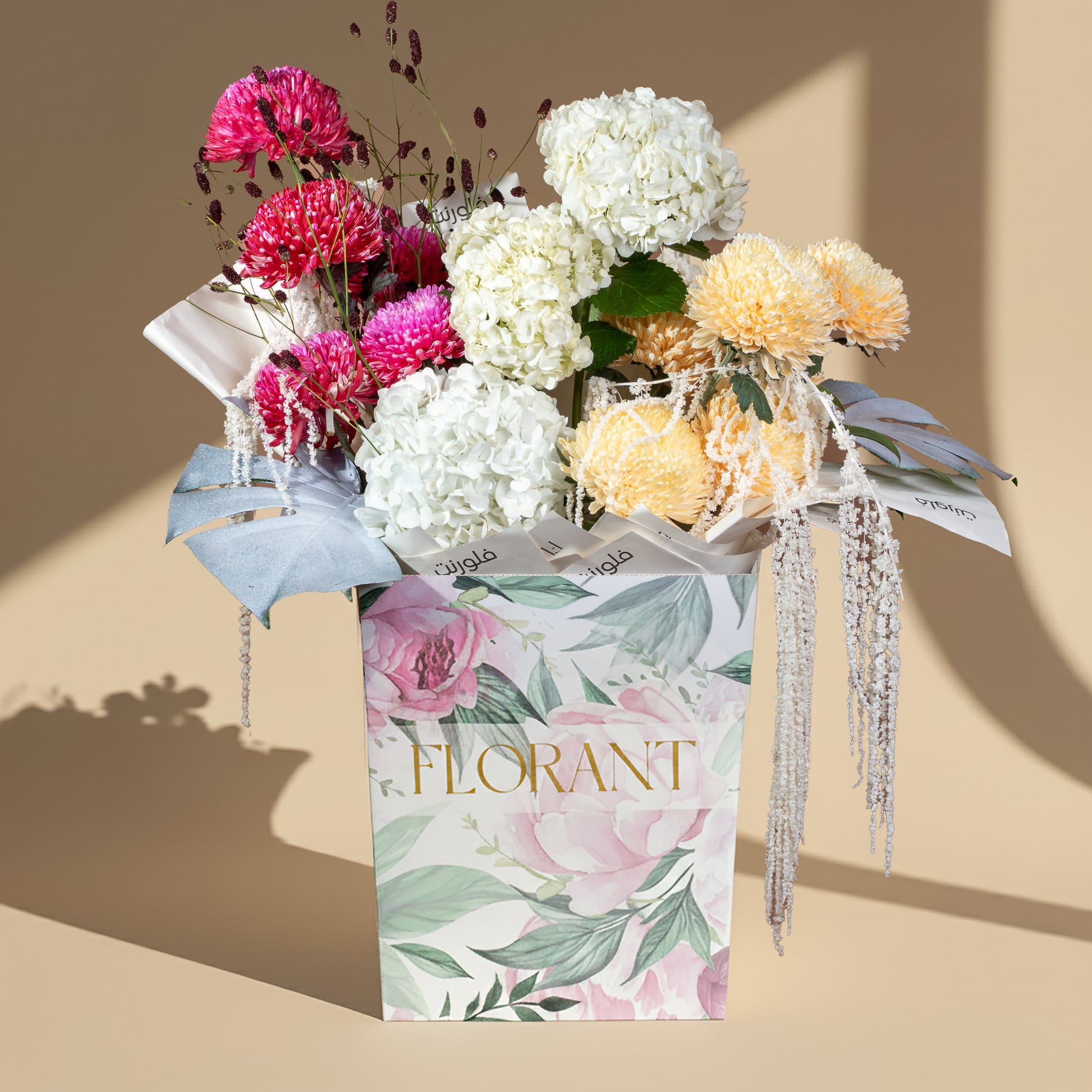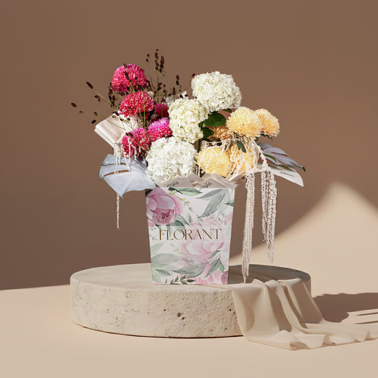 Wrapped in elegant silver paper with hanging ribbons and presented in our floral-printed Florant box. Perfect for celebrations and special occasions.
