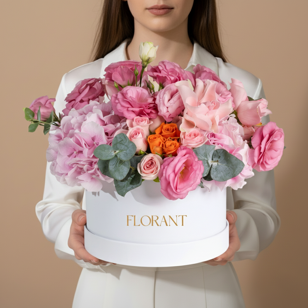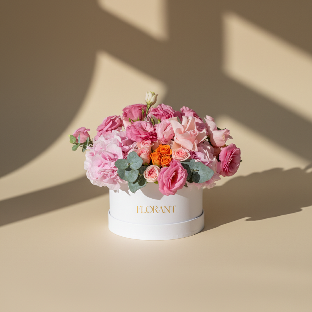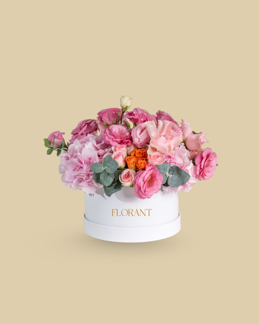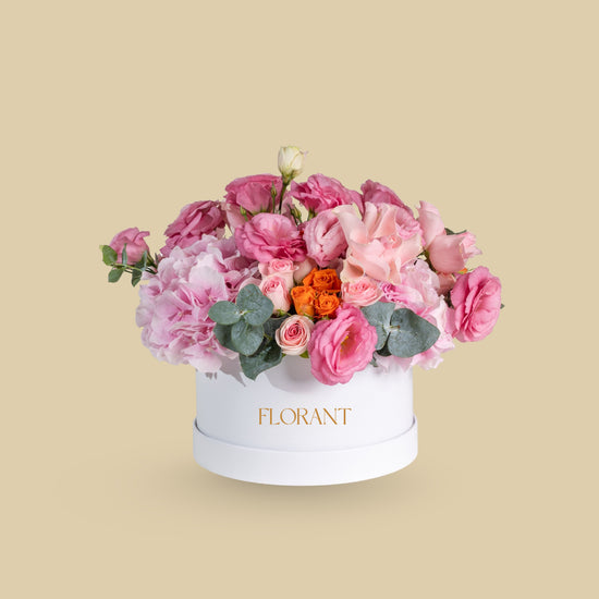 Presented in our white Florant round box. A wonderful choice for those who love variety in warm colors.