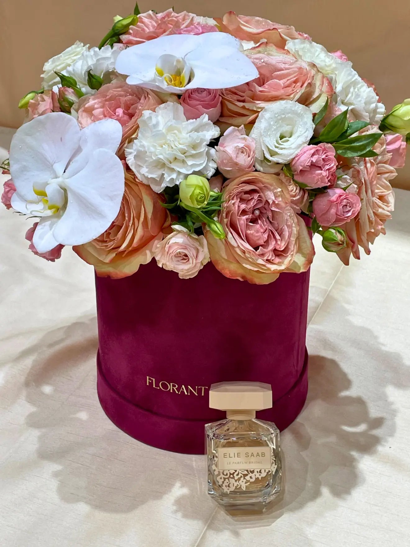 A luxurious Valentine’s Day flower arrangement featuring 3 delicate ranunculus, 15 elegant roses, 3 exquisite phalaenopsis orchids, and 8 charming baby roses. Paired with an Elie Saab fragrance, this stunning gift embodies romance, elegance, and sophistication, making it the perfect gesture for your loved one.