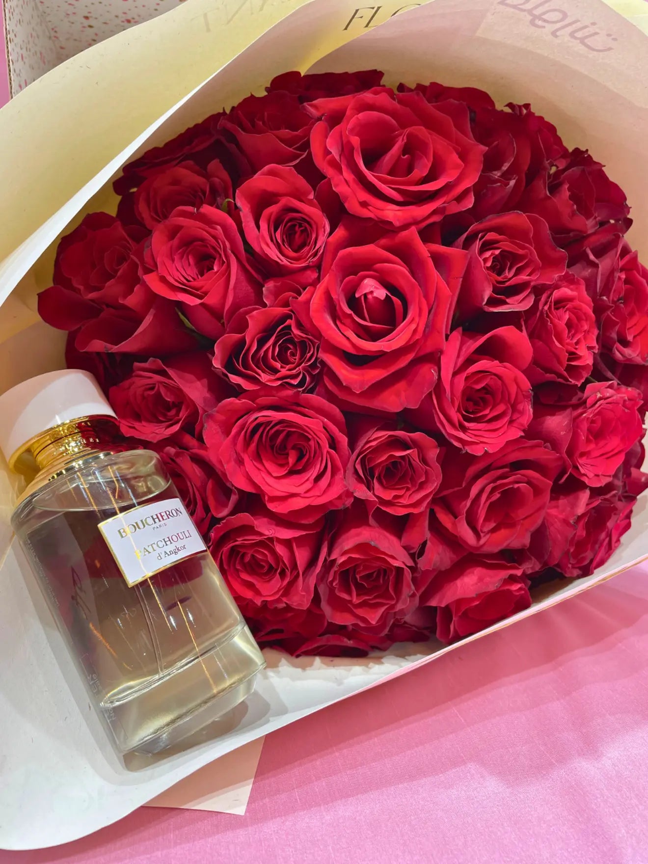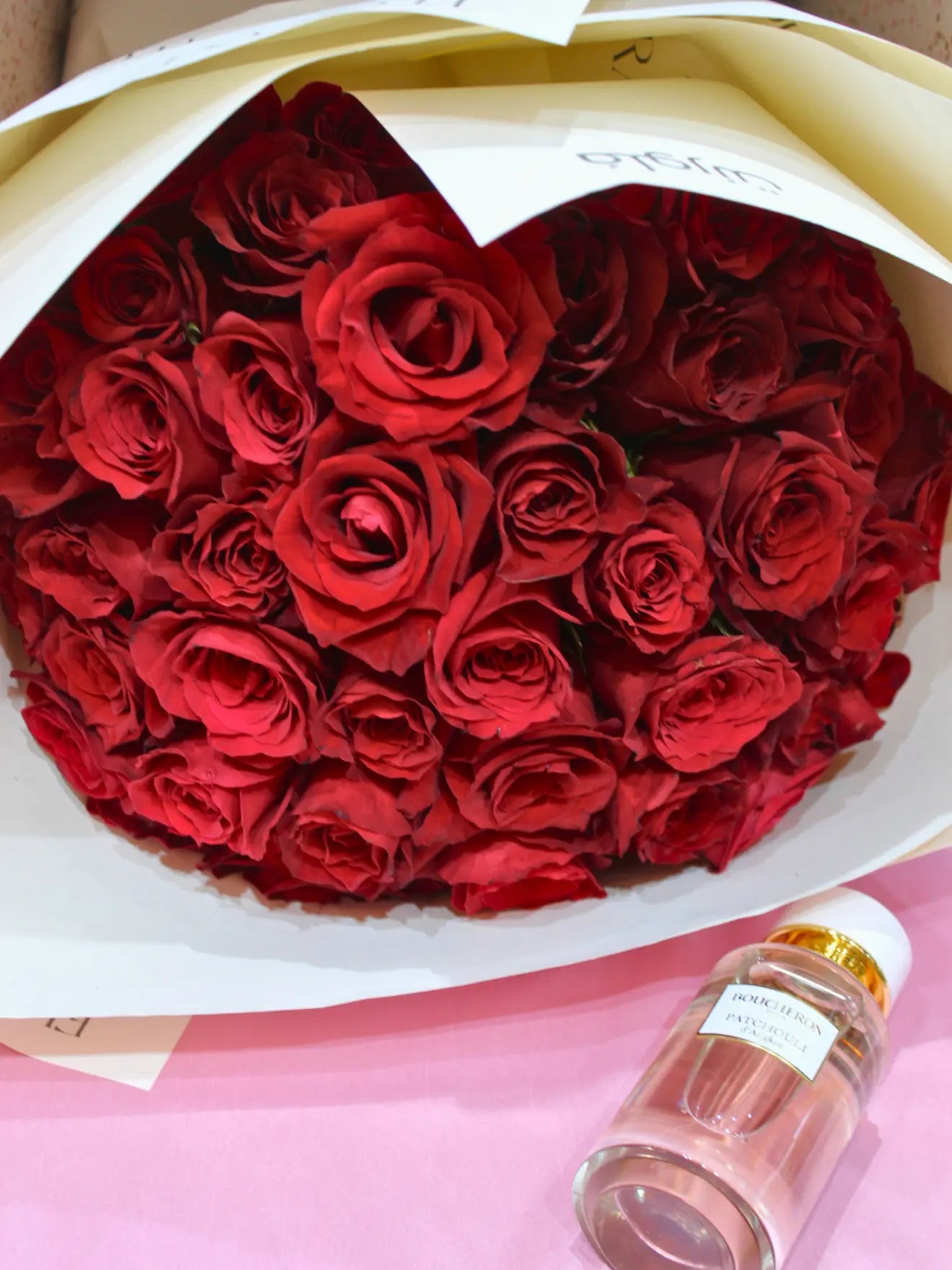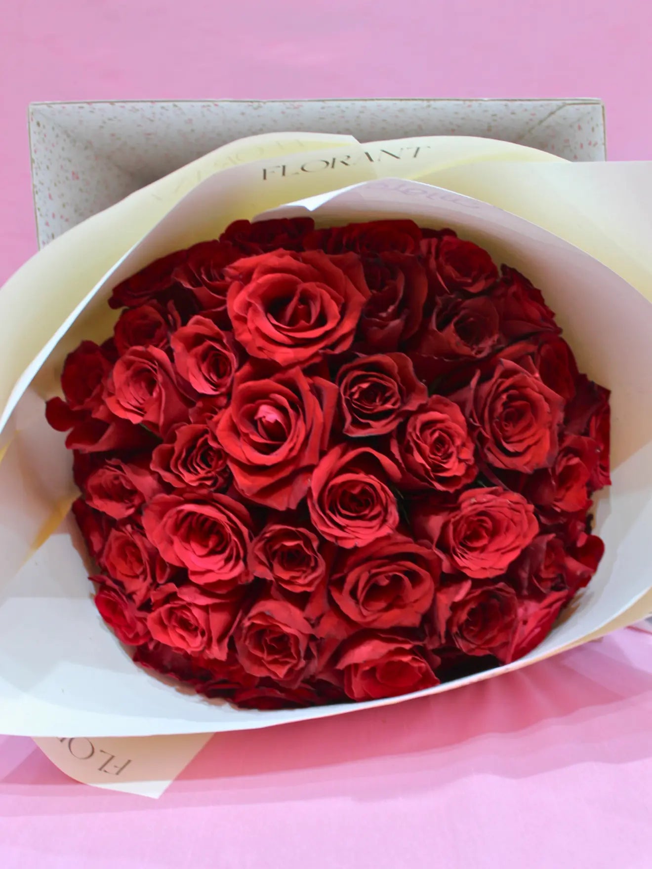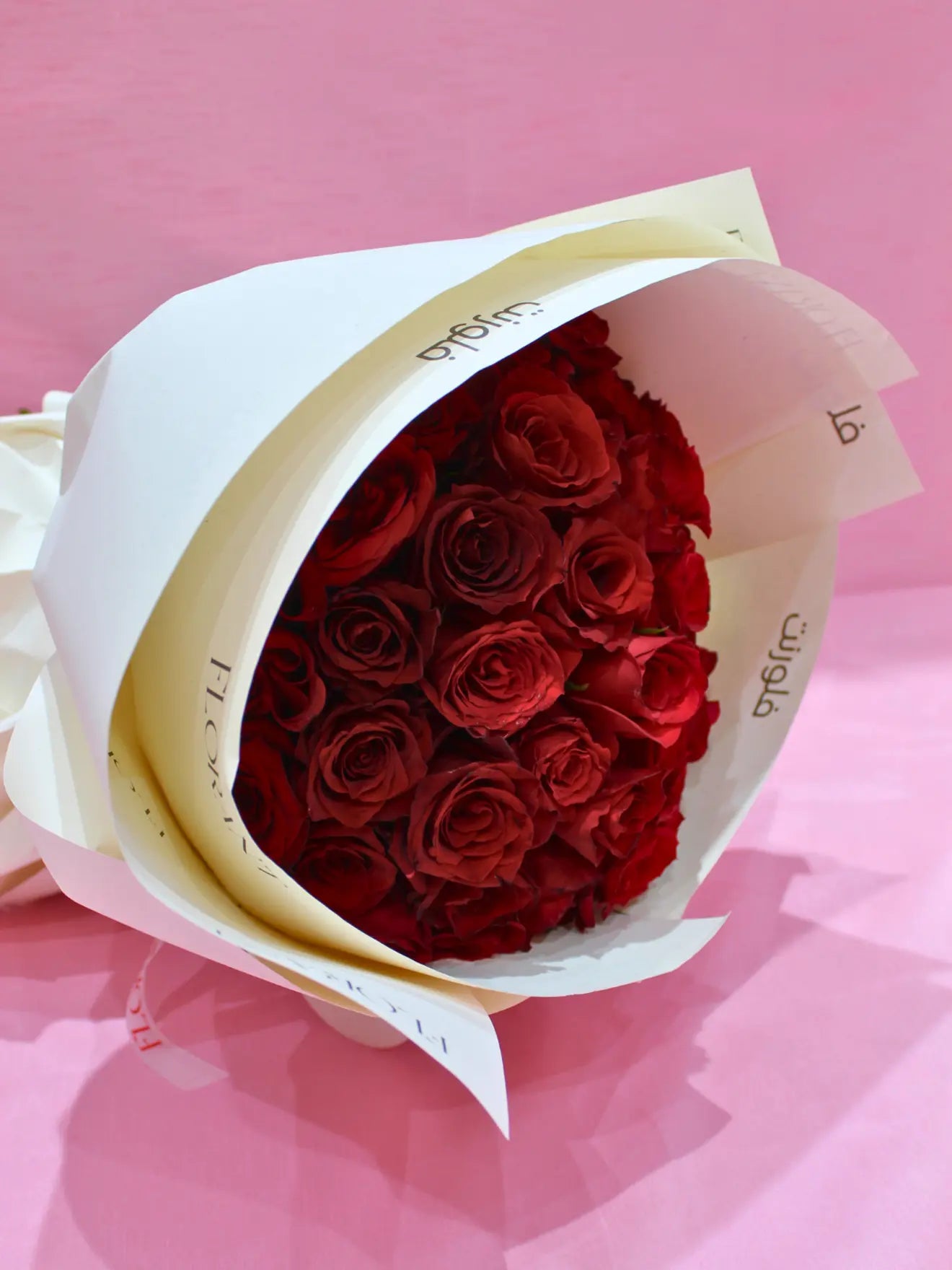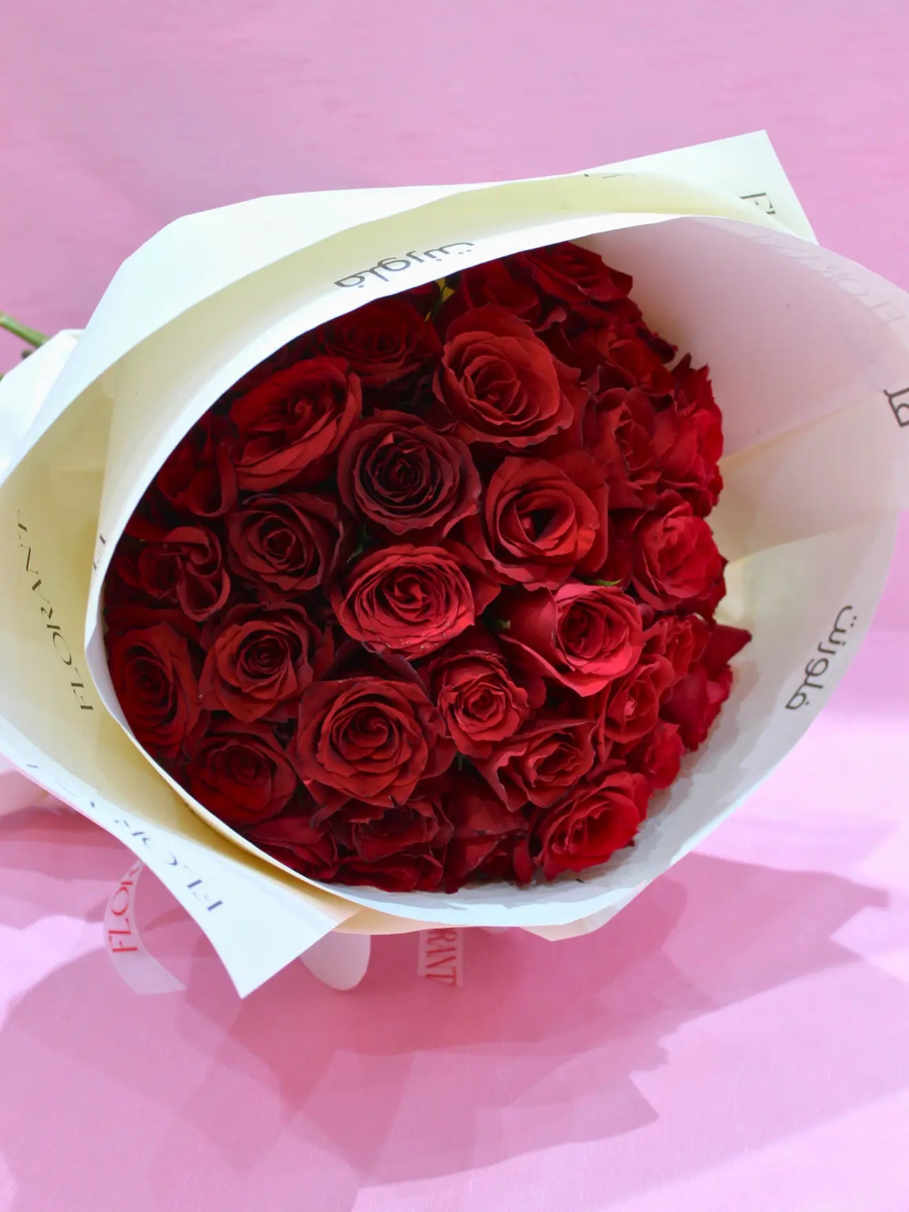 A timeless Valentine’s Day bouquet featuring fresh, vibrant red roses. This elegant arrangement is a perfect expression of love and affection, ideal for celebrating the season of romance with your special someone.