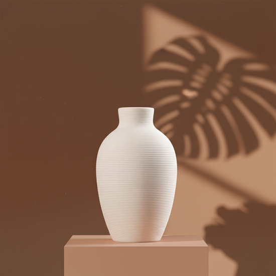 A ceramic classic vase with natural shaped of a plant.